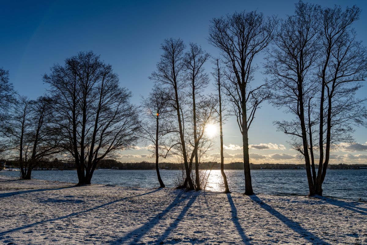 oglądanie zimowych wschodów i zachodów słońca nad jeziorem