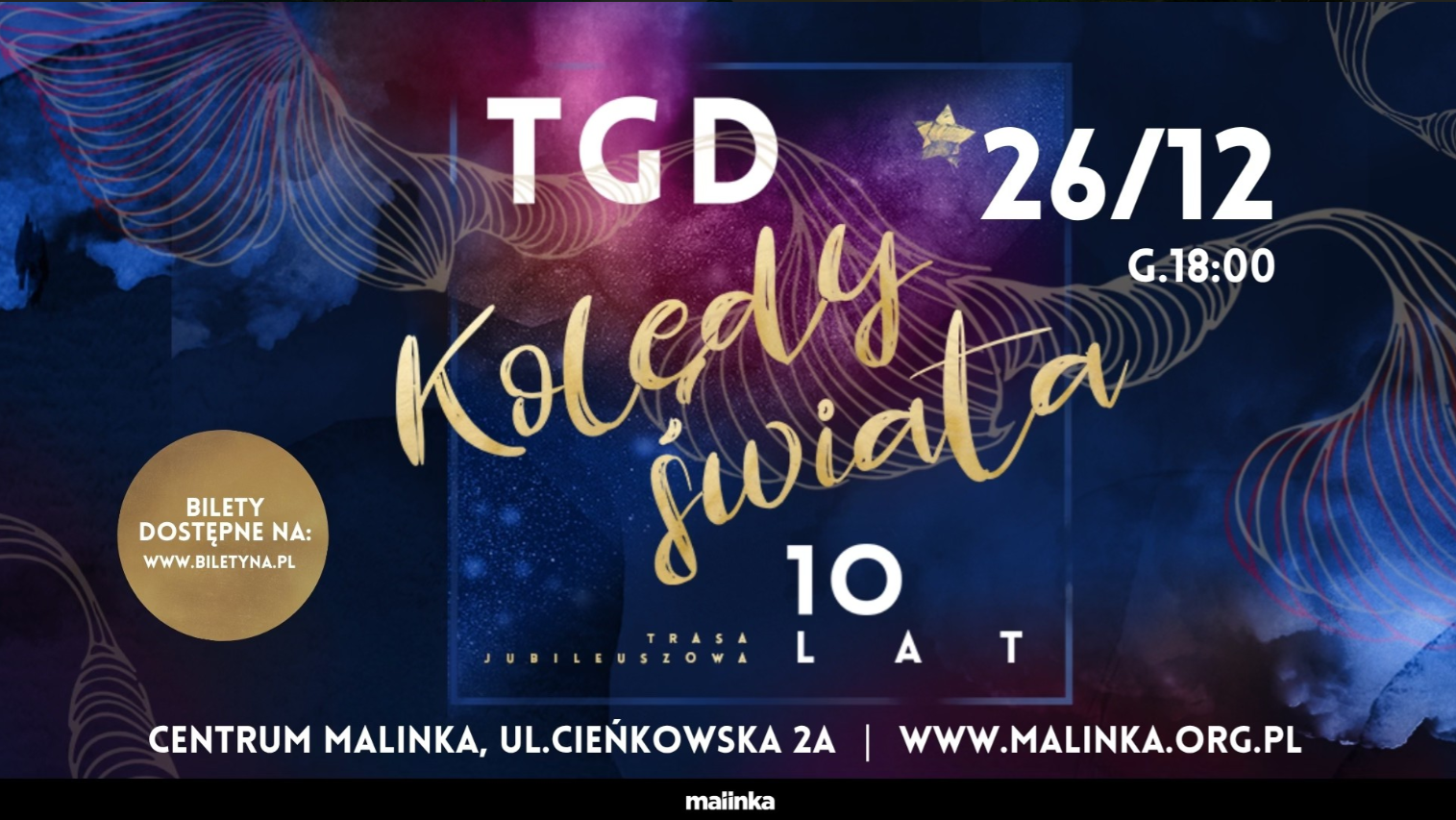 26 grudnia w Centrum Malinka zabrzmią wyjątkowe aranżacje kolęd z kultowego cyklu „Kolędy Świata”. TGD zabierze publiczność w muzyczną podróż – od nastrojowych pieśni po energetyczne gospelowe brzmienia 🌍✨