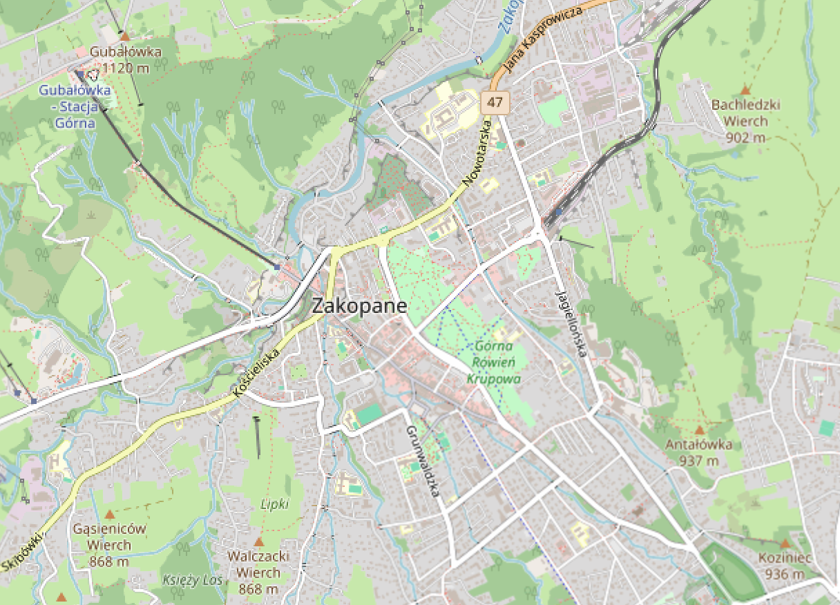 Nowotarska (od Ronda im. Romana Dmowskiego do skrzyżowania z Kościeliską i Krupówki).