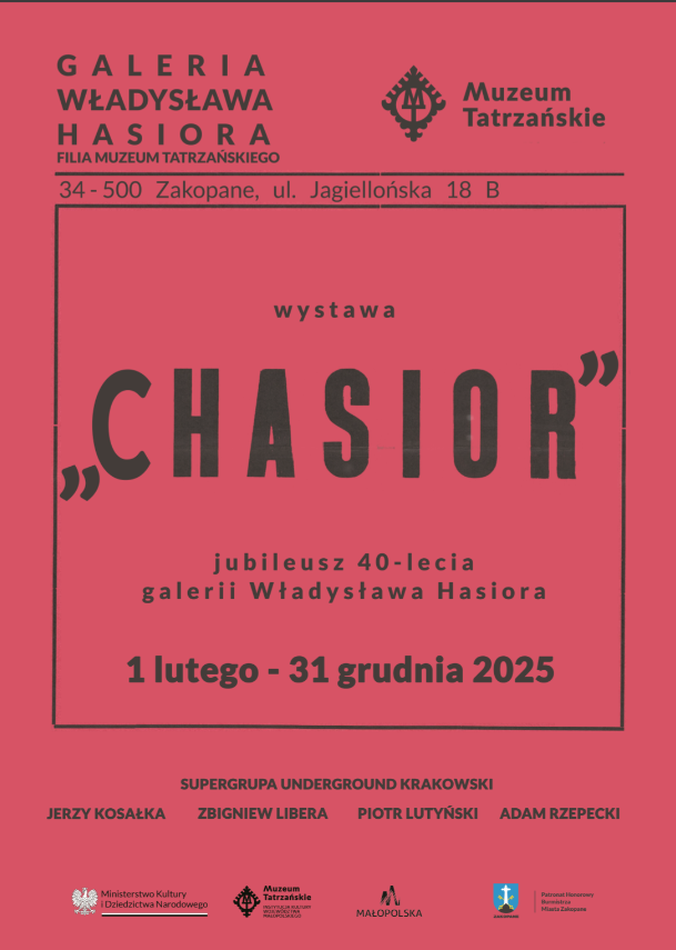 Od 1 lutego do 31 grudnia 2025 roku w Galerii Władysława Hasiora w Zakopanem można oglądać wyjątkową ekspozycję „CHASIOR”. Twórczość Mistrza Hasiora zestawiono tu z pracami artystów z grupy Krakowski Underground – Piotra Lutyńskiego, Adama Rzepeckiego, Jerzego Kosałki i Zbigniewa Libery.
